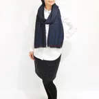 200cm×70cm大判サイズで、巻きでも羽織でもどちらも使いやすいストールです。上半身をすっぽりと覆うことができるため、トップスを気にせず合わせることができます。
