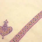 このカシミヤストールには最も繊細なインドカシミール地方ラダック産カシミヤ糸(パシュミナ)が使われています。そのため手織りカシミアストールの中でも最も目が細く繊細な生地となっています。薄くて軽くてやわらかい最上級の一枚です。