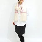 バランスの良い大判サイズで、巻きでも羽織でもどちらも使いやすいストールです。特に羽織は全面に施された刺繍が美しく輝き、サッとあしらうだけで全体の印象を大きく変えてくれます。