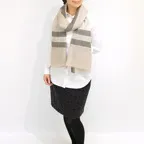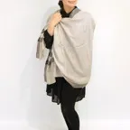 バランスの良い大判サイズで、巻きでも羽織でもどちらも使いやすいストールです。特に羽織は全面に施された刺繍が美しく輝き、サッとあしらうだけで全体の印象を大きく変えてくれます。