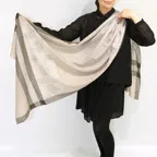 このカシミヤストールには最も繊細なインドカシミール地方ラダック産カシミヤ糸(パシュミナ)が使われています。そのため手織りカシミアストールの中でも最も目が細く繊細な生地となっています。薄くて軽くてやわらかい最上級の一枚です。