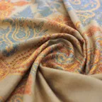 このカシミヤストールには最も繊細なインドカシミール地方ラダック産カシミヤ糸(パシュミナ)が使われています。そのため手織りカシミアストールの中でも最も目が細く繊細な生地となっています。薄くて軽くてやわらかい最上級の一枚です。