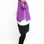 非常に大きなショールサイズで、広げて羽織れば上半身をすっぽりと覆うことができます。縦横の長さも十分にあるため、巻き方の自由度が広がります。程よいボリューム感と立体感を簡単につくることができるため、一巻きでこなれた印象になります。面積もあるので、真夏の室内での冷房対策や膝掛けとしても使いやすくなっています。