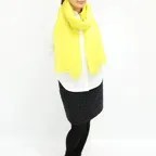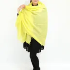 「あら素敵」と声をかけられそうな鮮やかなイエローカラー。コートを脱いでもパッと華やかな、一枚で存在感のあるショールです。