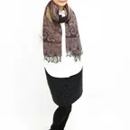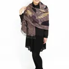 スタンダードな大判サイズで、首に巻くことはもちろん、室内でのひざ掛けにも、肩から羽織る使い方もできます。特に羽織りは、パッと華やかにエレガントな雰囲気に変わります。上半身を覆えるので、着ている服を気にせず合わせることができます。忙しい朝もコーディネートを気にする必要はありません。