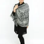 生地感よりカジュアルな普段使いにも、少しフォーマルなシーンでも使いやすいタイプです。スタイルや場所を問わず合わせることができる優れたストールです。