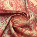 糸そのものの美しい光沢感を活かし、ジャカード織機で製作された繊細で上品なペイズリーデザインが装いに洗練された印象を与えてくれます。