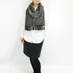 透け感のある生地で想像以上にスッキリまとまります。アウターの中にも収めやすく、インにアウトに扱いやすいストールです。