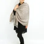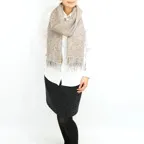 スタンダードな大判サイズで、首に巻くことはもちろん、室内でのひざ掛けにも、肩から羽織る使い方もできます。特に羽織りは、パッと華やかにエレガントな雰囲気に変わります。上半身を覆えるので、着ている服を気にせず合わせることができます。忙しい朝もコーディネートを気にする必要はありません。