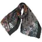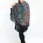 アシンメトリーなペイズリー柄がダイナミックに描かれたウールショール。ゆるっと巻くだけでおしゃれな人になれる一枚です。