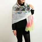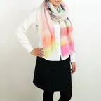 大判サイズのストールで肩から羽織る使い方もできます。春夏の日除けや冷房対策としても使いやすくなっています。