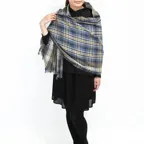 生地感よりカジュアルな普段使いにも、少しフォーマルなシーンでも使いやすいタイプです。スタイルや場所を問わず合わせることができる優れたストールです。