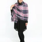 コントラストの効いたメリハリのあるデザイン。一巻きで差がつくストールに仕上がっています。