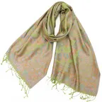 シルクは代表的な通年素材です。春・秋・冬は防寒とファッションのアクセントに、夏は日除けや冷房対策に。使い方を変えて一年中使うことができます。さらに強度も高く、化学繊維に劣らない強さを持っているため、非常に長く使うことができる優れたストールです。