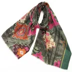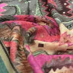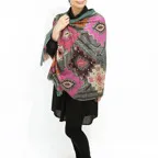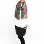 カラフルで個性的。こんなストールが一枚あるとシンプルなコーディネートでも、お洒落感たっぷりのスタイリングに
