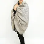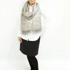縦の長さが205cm、横幅105cmの特大ショールサイズで、ゆるっと巻くだけで立体的でボリューム感のある表情を作り出せます。広げて羽織れば上半身をすっぽりと覆うことができるのでトップスを気にせず合わせることができます。秋冬のアウター代わりにはもちろん、真夏の室内での冷房対策や膝掛けとしても使いやすくなっています。