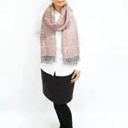 縦の長さが205cm、横幅105cmの特大ショールサイズで、ゆるっと巻くだけで立体的でボリューム感のある表情を作り出せます。広げて羽織れば上半身をすっぽりと覆うことができるのでトップスを気にせず合わせることができます。秋冬のアウター代わりにはもちろん、真夏の室内での冷房対策や膝掛けとしても使いやすくなっています。