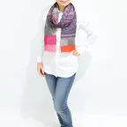 生地感よりカジュアルな普段使いにも、少しフォーマルなシーンでも使いやすいタイプです。スタイルや場所を問わず合わせることができる優れたストールです。