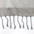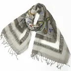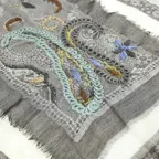 落ち着いた色使いでありながら、立体刺繍が程よいアクセントになる使いやすいストール。ウール特有のチクチク感が苦手な方でも安心して身につけることができます。
