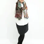 非常に大きなショールサイズで、広げて羽織れば上半身をすっぽりと覆うことができます。縦横の長さも十分にあるため、巻き方の自由度が広がります。程よいボリューム感と立体感を簡単につくることができるため、一巻きでこなれた印象になります。面積もあるので、真夏の室内での冷房対策や膝掛けとしても使いやすくなっています。