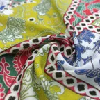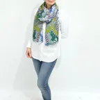 トラディショナルなペイズリー柄にあそび心あるデザインを加えた一枚。コントラストの効いた色合いでゆるっと巻くだけでアクセント効果が高くなっています!