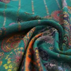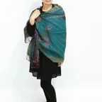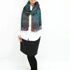 スタンダードな大判サイズで、首に巻くことはもちろん、室内でのひざ掛けにも、肩から羽織る使い方もできます。特に羽織りは、パッと華やかにエレガントな雰囲気に変わります。上半身を覆えるので、着ている服を気にせず合わせることができます。忙しい朝もコーディネートを気にする必要はありません。
