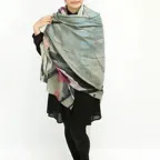 非常に大きなショールサイズで、広げて羽織れば上半身をすっぽりと覆うことができます。縦横の長さも十分にあるため、巻き方の自由度が広がります。程よいボリューム感と立体感を簡単につくることができるため、一巻きでこなれた印象になります。面積もあるので、真夏の室内での冷房対策や膝掛けとしても使いやすくなっています。