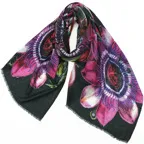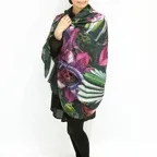 非常に大きなショールサイズで、広げて羽織れば上半身をすっぽりと覆うことができます。縦横の長さも十分にあるため、巻き方の自由度が広がります。程よいボリューム感と立体感を簡単につくることができるため、一巻きでこなれた印象になります。面積もあるので、真夏の室内での冷房対策や膝掛けとしても使いやすくなっています。