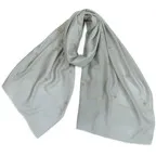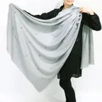 195cm×100cm大判ショールサイズで、巻きでも羽織でもどちらも使いやすいストールです。特に羽織は全面に施された刺繍が美しく輝き、サッとあしらうだけでゴージャスな雰囲気に変化します。横幅が特に長いのでドレスや着物などの羽織物としても重宝します。