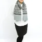 190cm×67cmのスタンダードな大判サイズで、巻きでも羽織でもどちらも使いやすいストールです。特に羽織は全面に施された刺繍が美しく輝き、サッとあしらうだけでエレガントな雰囲気に変化します。ドレスや着物などの羽織物としても重宝します。