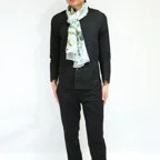 甘さ控えめ。凛と美しいシルクストール。イタリア人アーティストによる繊細なフラワーモチーフが印象的な一枚です。