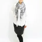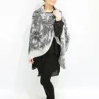 モダンアートのような躍動感のあるペイズリー柄。サイズの大きなショールタイプでゆるっと巻くだけで立体感のある表情を作り出すことができます。