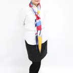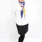 また、小さくまとまるのでアスコットタイのようにシャツやブラウスの中におさめて使うこともできます。室内でも巻いたままでいられるので使いやすくなっています。