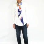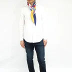 また、小さくまとまるのでアスコットタイのようにシャツやブラウスの中におさめて使うこともできます。室内でも巻いたままでいられるので使いやすくなっています。