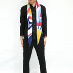 アーティスティックなデザインと発色の良さが際立つ一枚。シンプルに使うだけでアクセント効果が抜群のストールに仕上がっています。