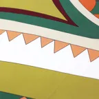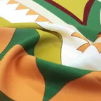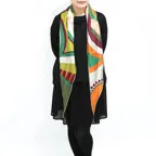 アーティスティックなデザインと発色の良さが際立つ一枚。シンプルに使うだけでアクセント効果が抜群のストールに仕上がっています。