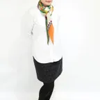 また、小さくまとまるのでアスコットタイのようにシャツやブラウスの中におさめて使うこともできます。室内でも巻いたままでいられるので使いやすくなっています。