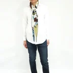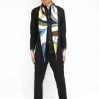 アーティスティックなデザインと発色の良さが際立つ一枚。シンプルに使うだけでアクセント効果が抜群のストールに仕上がっています。