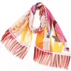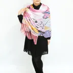 スタンダードな大判サイズで巻きでも羽織でもどちらでも使いやすくなっています。特に春夏の日除けや冷房対策としても使いやすく、ファッションのアクセントとしてなら一年中使うことができます。