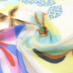 スタンダードな大判サイズで巻きでも羽織でもどちらでも使いやすくなっています。特に春夏の日除けや冷房対策としても使いやすく、ファッションのアクセントとしてなら一年中使うことができます。