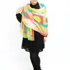 スタンダードな大判サイズで巻きでも羽織でもどちらでも使いやすくなっています。特に春夏の日除けや冷房対策としても使いやすく、ファッションのアクセントとしてなら一年中使うことができます。