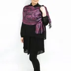 自然な陰影が美しい。高級感のあるシルクストール。合わせやすさとアクセント効果のバランスが絶妙な一枚です。