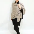 バランスの良い大判サイズで、巻きでも羽織でもどちらも使いやすいストールです。特に羽織は全面に施された刺繍が美しく輝き、サッとあしらうだけで全体の印象を大きく変えてくれます。