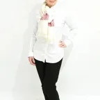 生地の厚みと刺繍の重量感も手伝って、すとんと流れるような落ち感が絶妙です。ゴワゴワせずスッキリとした印象を作り出すことができます。