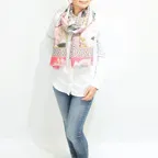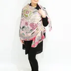 大判サイズのストールで肩から羽織る使い方もできます。春夏の日除けや室内の冷房対策としても使いやすくなっています。