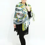 大判サイズのストールで肩から羽織る使い方もできます。春夏の日除けや室内の冷房対策としても使いやすくなっています。