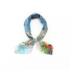 65cm×65cmの小判スカーフで、アスコットタイのようにシャツやブラウスの中におさめて使うこともできます。室内でも巻いたままでいられるので使いやすくなっています。