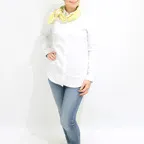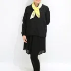 65cm×65cmの小判スカーフで、アスコットタイのようにシャツやブラウスの中におさめて使うこともできます。室内でも巻いたままでいられるので使いやすくなっています。