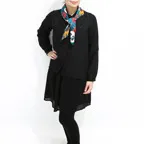 65cm×65cmの小判スカーフで、アスコットタイのようにシャツやブラウスの中におさめて使うこともできます。室内でも巻いたままでいられるので使いやすくなっています。