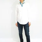 65cm×65cmの小判スカーフで、アスコットタイのようにシャツやブラウスの中におさめて使うこともできます。室内でも巻いたままでいられるので使いやすくなっています。